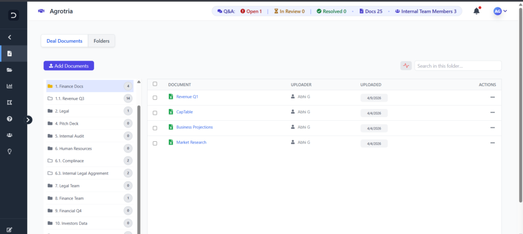 Uploading documents is a core part of How to Create a Data Room, and DeelTrix makes this process seamless. You can upload files individually or in bulk, ensuring that large volumes of data are handled efficiently.